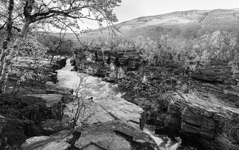 Abiskoeatnu (Abiskojåkka) bildar en canyon nära stationen.